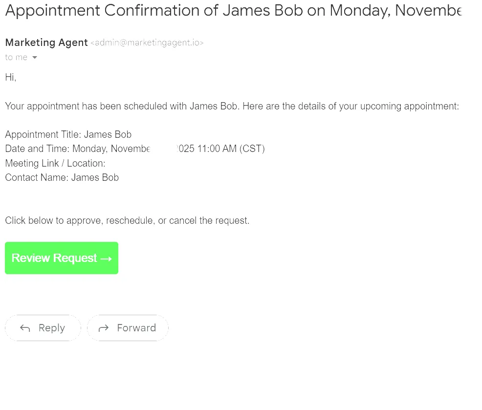 Agent X installs an AI call-taker to schedule demos or consultations on your calendar, and then texts and/or emails clients as follow up. Watch the video to see the VERY human-like Agent X Voice AI set a demo appointment on the Calendar...and then email and text the client the details along with the Zoom link. Screengrabs of the texts and emails below.